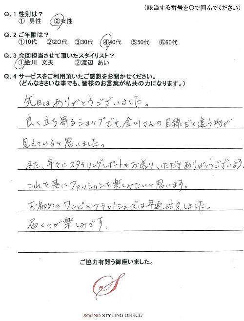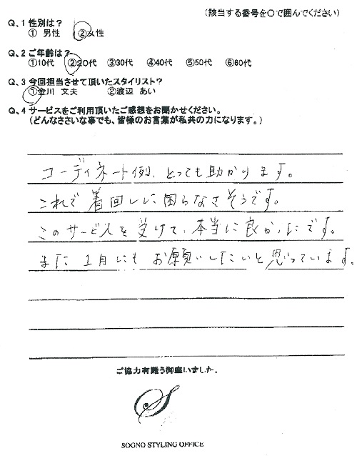 当社パーソナルスタイリスト