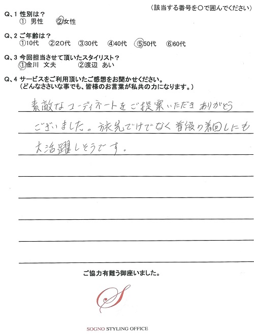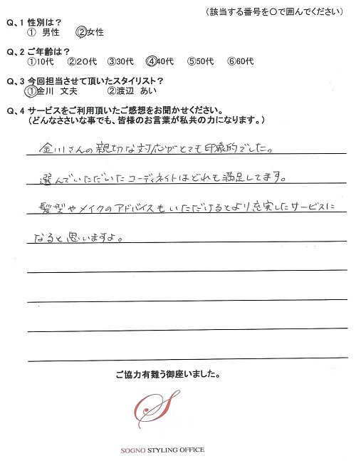 選んでいただいたコーディネートはどれも満足しています。
