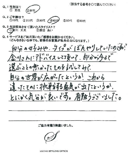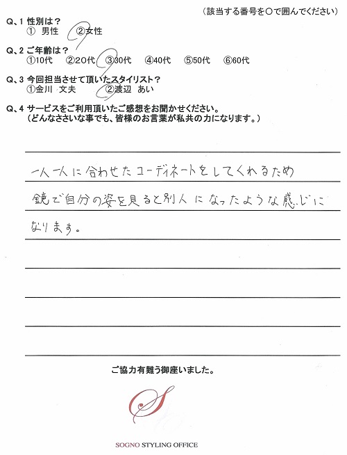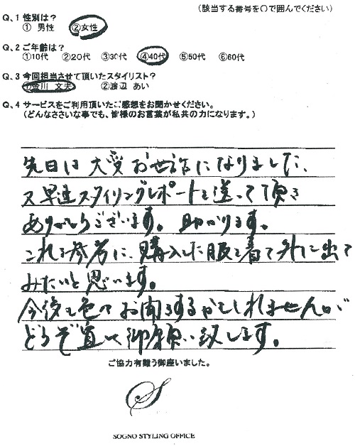又、早速スタイリングレポートを送って頂きありがとうございます。助かります。