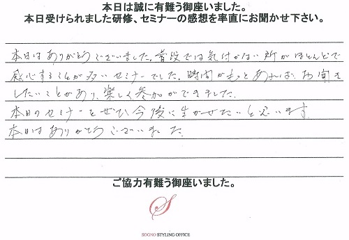 ソーニョスタイリングオフィスは身だしなみ研修のオンリーワンです!