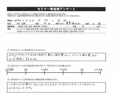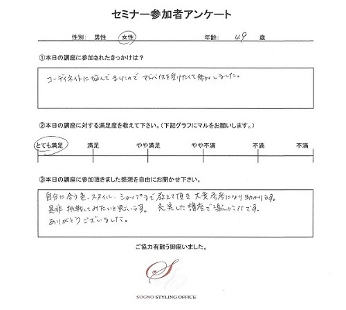 座学中心のセミナーではなく、参加者お一人おひとりのコーディネートアドバイスを中心としたセミナーを致します。
